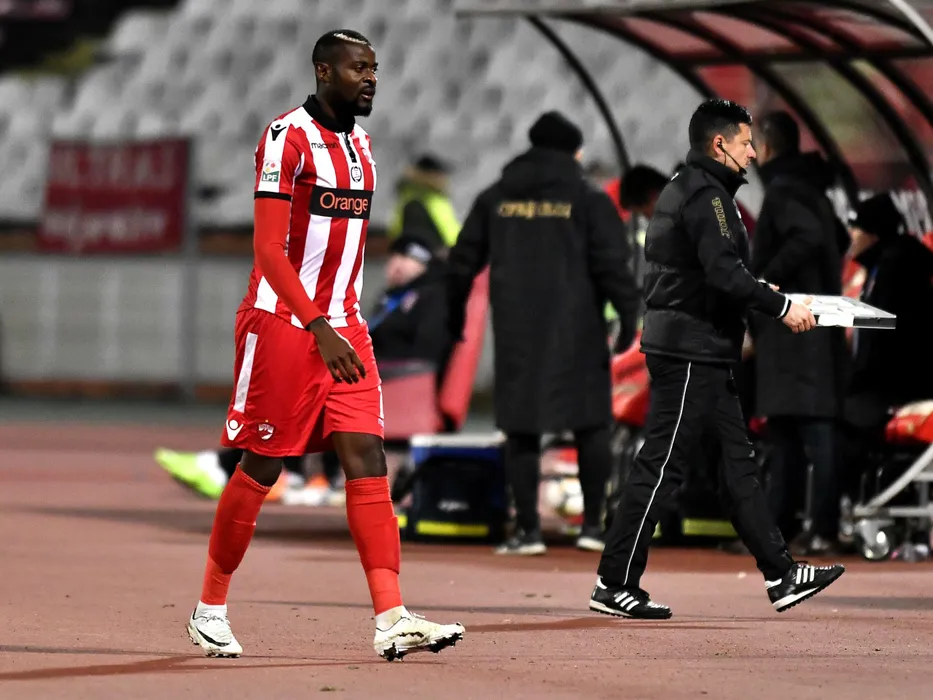 Jeremy Bokila paraseste terenul in meciul de fotbal dintre Dinamo Bucuresti si CFR Cluj, din cadrul Ligii 1 Betano, desfasurat pe stadionul Dinamo din Bucuresti, duminica 19 noiembrie 2017. © FOTO Razvan Pasarica/SPORT PICTURES