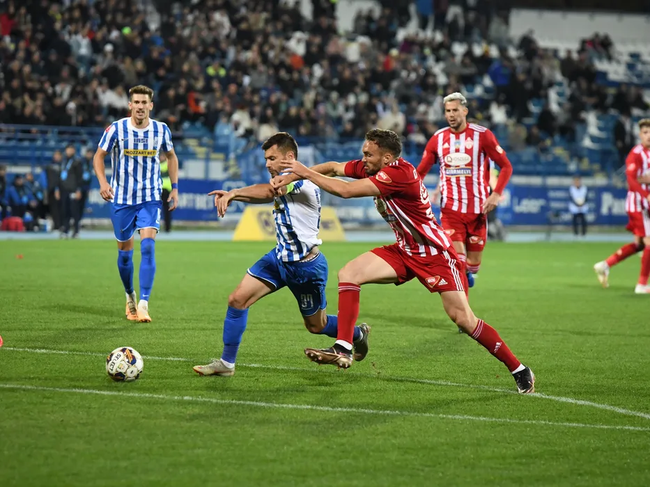 Mihai Catalin Bordeianu și Gabriel Debeljuh în meciulde fotbal dintre POLI IAȘI si FC SEPSI OSK SFÂNTU GHEORGHE contând pentru SuperLiga Superbet, desfașurat pe Stadionul Emil Alexandrescu din Iași, joi 19 octombrie 2023. © FOTO: Tudi/SPORT PICTURES