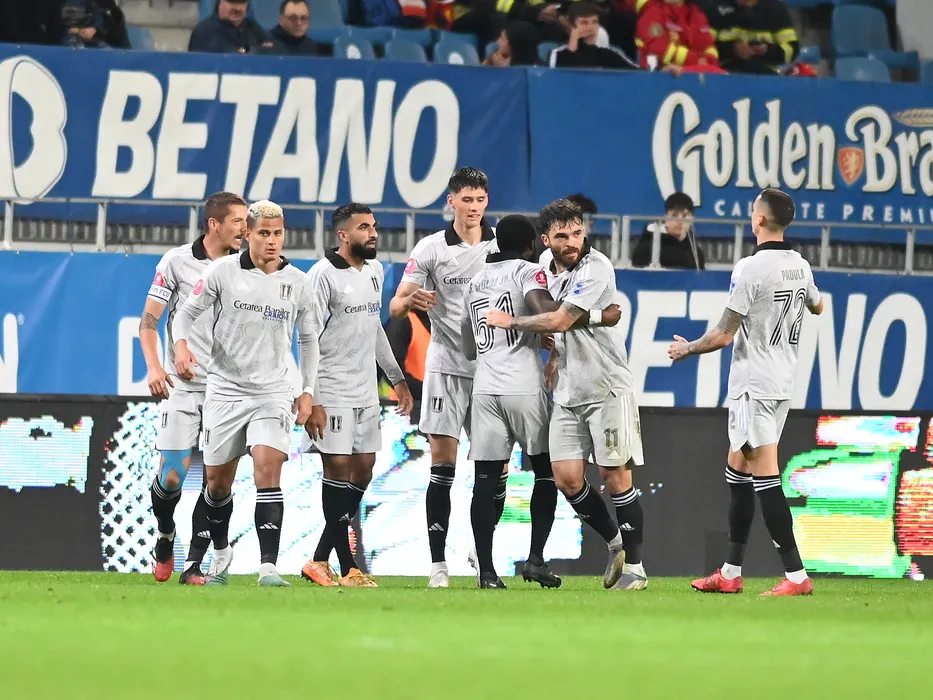 Bucurie a fotbalistilor craioveni Alexandru Vlad Achim, Vladislav Blanuta, Raimundo Matheus Mascarenhas Dos Santos, Aurelian Ionut Chitu si Yassine Bahassa dupa un gol marcat in meciul de fotbal dintre Universitatea Craiova si FC U Craiova, contand pentru Superliga Superbet, desfasurat pe Stadionul Ion Oblemenco din Craiova, sambata 4 noiembrie 2023. © FOTO:Razvan Pasarica/SPORT PICTURES