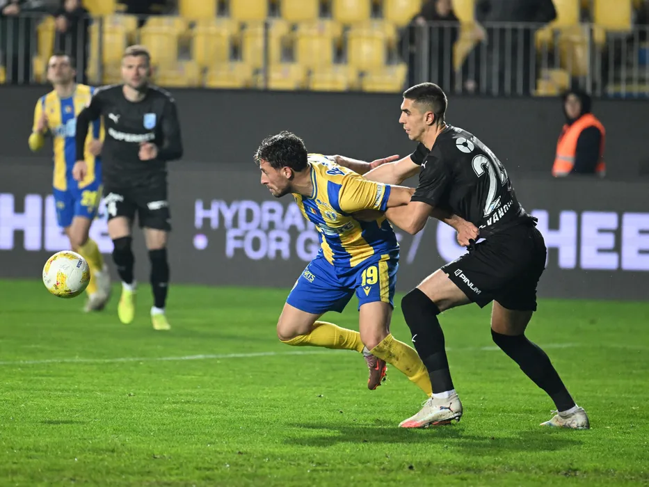 Konstantinos Doumtsios si Nikola Stefanovic in meciul dintre Petrolul Ploiesti si Universitatea Craiova, contand pentru Cupa Romaniei Betano, desfasurat pe Stadionul Ilie Oana din Ploiesti, joi 4 decembrie 2025. © FOTO:Razvan Pasarica/SPORT PICTURES