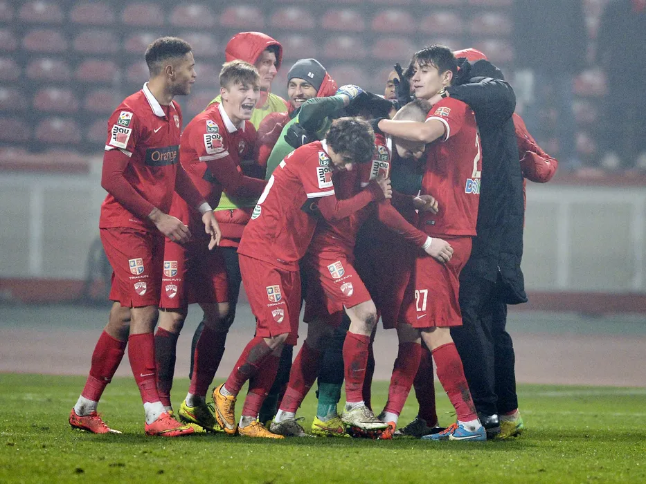 Bucurie a jucatorilor dinamovisti cu Patrick Petre,Ionut Nedelcearu,Alexandre Durimel si Denis Lemac