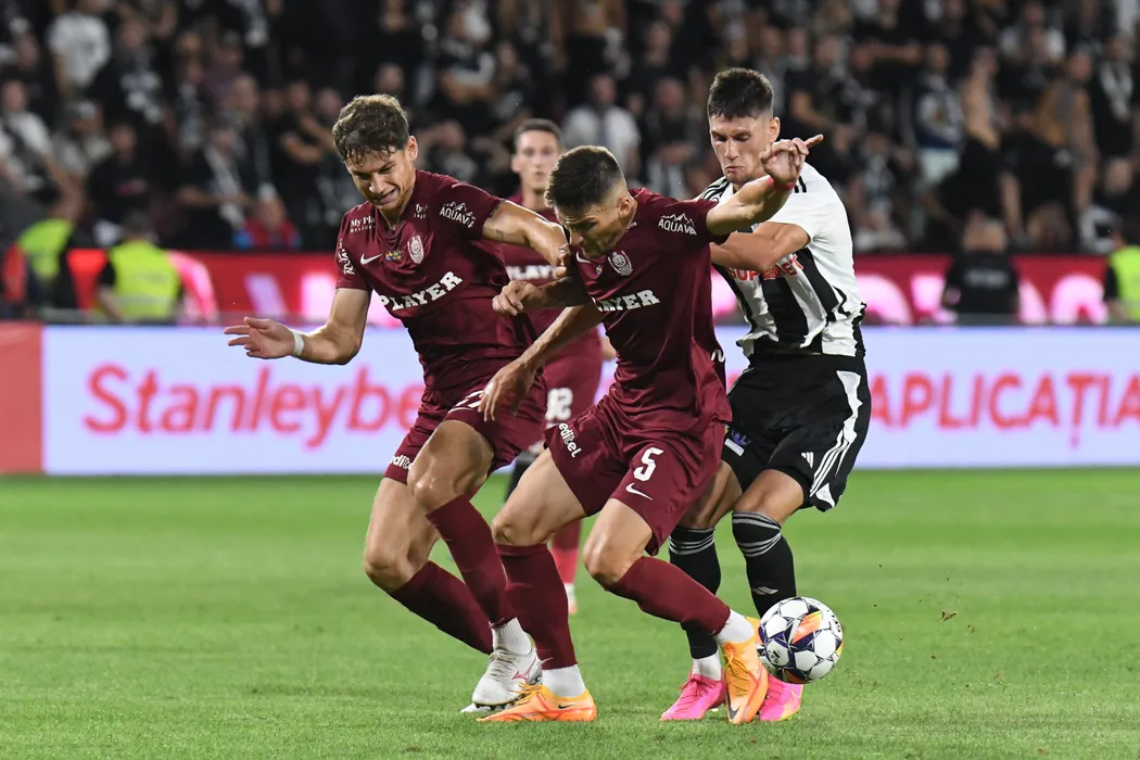 Daniel Graovac, Matei Christian Ilie și Vladislav Blănuță în meciul de fotbal dintre FC CFR 1907 Cluj si FC Universitatea Cluj, contând pentru Superliga Superbet, desfășurat pe Stadionul Dr.Constantin Rădulescu din Cluj-Napoca, duminică 4 august 2024. © FOTO: Flaviu BUBOI/SPORT PICTURES