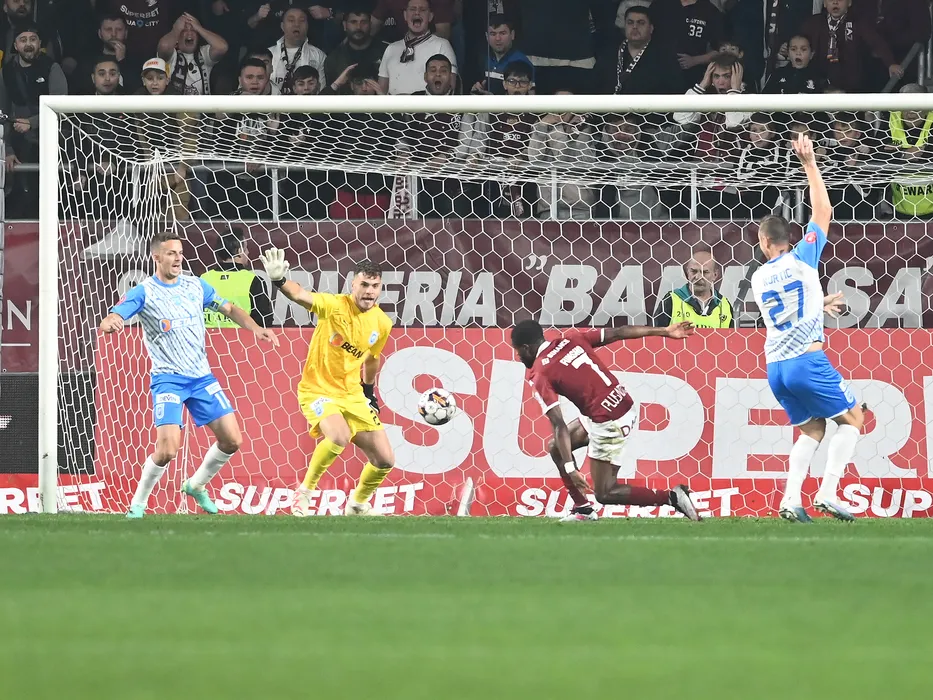Nicusor Silviu Bancu, Iulian Laurentiu Popescu, Funsho Ibrahim Bamgboye si Jasmin Kurtic in meciul de fotbal dintre Rapid Bucuresti si Universitatea Craiova, din cadrul Superligii Superbet, desfasurat pe Superbet Arena-Giulesti din Bucuresti, duminica 29 octombrie 2023. © FOTO:Razvan Pasarica/SPORT PICTURES