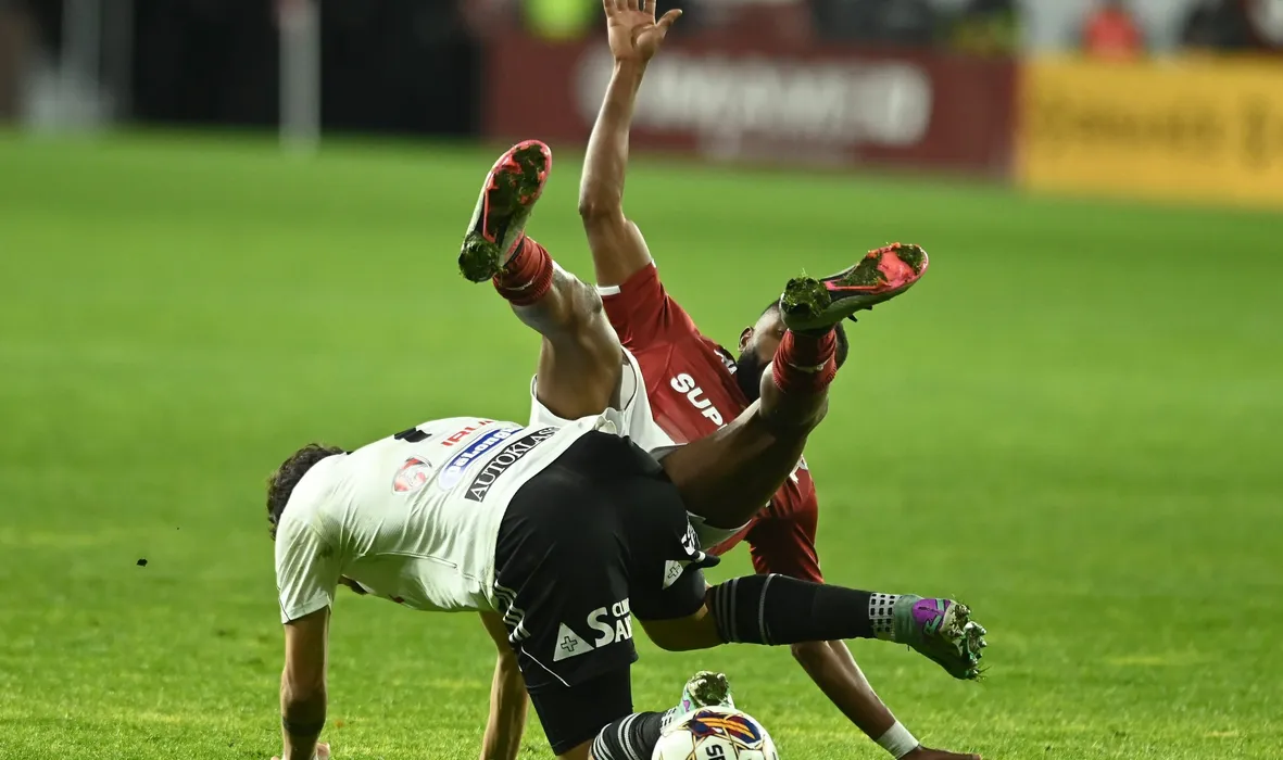 Ianis Ilie Stoica si Hama Juvhel Fred Tsoumou in meciul de fotbal dintre Rapid Bucuresti si Universitatea Cluj, din cadrul Superligii Superbet, desfasurat pe Superbet Arena-Giulesti din Bucuresti, luni 27 noiembrie 2023. © FOTO:Razvan Pasarica/SPORT PICTURES
