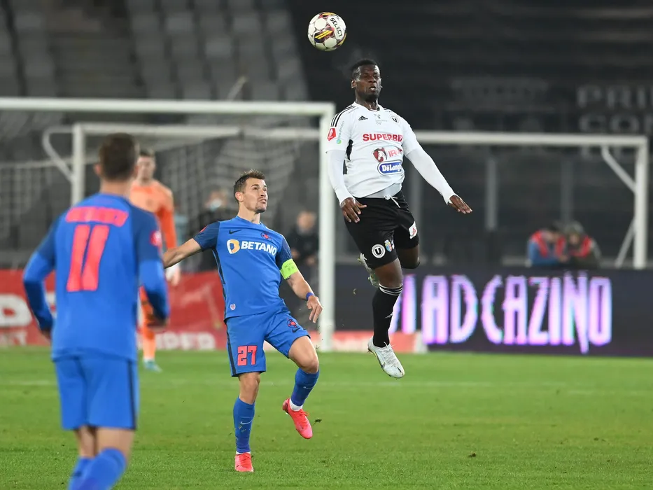 Darius Dumitru Olaru si Mamadou Thiam in meciul de fotbal dintre Universitatea Cluj si FCSB, contand pentru Superliga Superbet, desfasurat pe Cluj Arena din Cluj Napoca, duminica 31 octombrie 2022. © FOTO:Razvan Pasarica/SPORT PICTURES