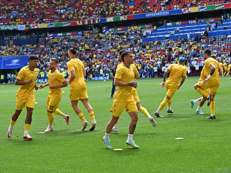 Fotbalistii romani Florinel Coman, Nicolae Stanciu si Denis Drăguş la incalzire inaintea meciului dintre Romania si Ucraina, din cadrul UEFA EURO 2024, desfasurat pe Fussball Arena din Munchen, luni 17 iunie 2024. © FOTO:Razvan Pasarica/SPORT PICTURES