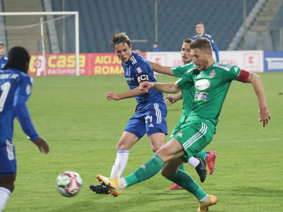 William Guido R Baeten si Bogdan Alexandru Mitrea in meciul de fotbal dintre U Craiova 1948 si Sepsi OSK Sfantu Gheorghe, contand pentru Cupa Romaniei, desfasurat fara spectatori pe stadionul Municipal din Drobeta Turnu Severin, joi 28 OCTOMBRIE 2021. © FOTO:Catalin Ciupureanu/SPORT PICTURES