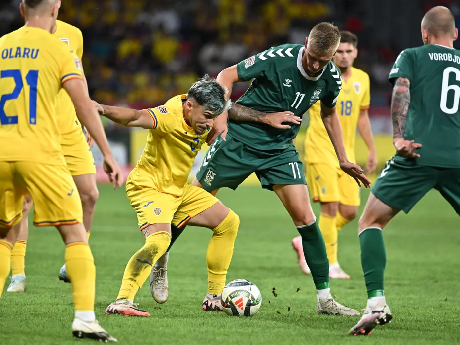 Andrei Rațiu si Armandas Kučys in meciul de fotbal dintre Romania si Lituania, contand pentru Liga Natiunilor, desfasurat pe Stadionul Steaua din Bucuresti, luni 9 septembrie 2024. © FOTO:Razvan Pasarica/SPORT PICTURES