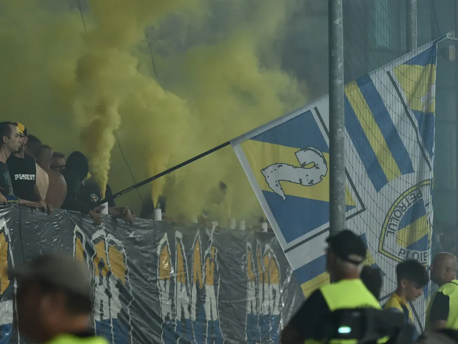 Fumigene si torte in peluza petrolista la meciul de fotbal dintre Petrolul Ploiesti si Rapid Bucuresti, contand pentru Superliga Superbet, desfasurat pe Stadionul Ilie Oana din Ploiesti, sambata 13 august 2022. © FOTO:Razvan Pasarica/SPORT PICTURES