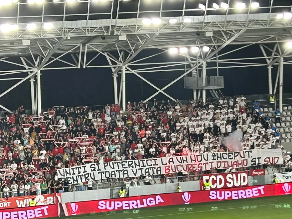 Atmosferă superbă la Dinamo – Universitatea Craiova! Mesajul afișat de către suporterii dinamoviști la revenirea în prima ligă | FOTO