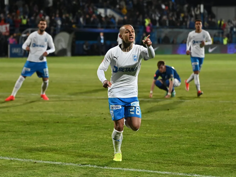 Ionuț Alexandru Mitriță se bucură dupa un gol marcat in meciul de fotbal dintre Farul Constanta si Universitatea Craiova, contand pentru Play off-ul Superligii Superbet, desfasurat pe Stadionul central al Academiei Gheorghe Hagi din Ovidiu, luni 13 mai 2024. © FOTO:Razvan Pasarica/SPORT PICTURES