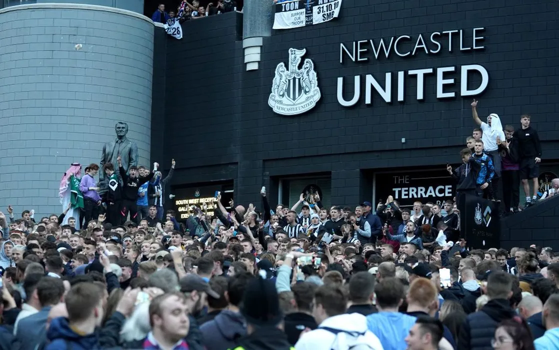 Newcastle United fans celebrate at St James' Park following the announcement that The Saudi-led takeover of Newcastle has been approved. Picture date: Thursday October 7, 2021. (Photo by Owen Humphreys/PA Images via Getty Images)