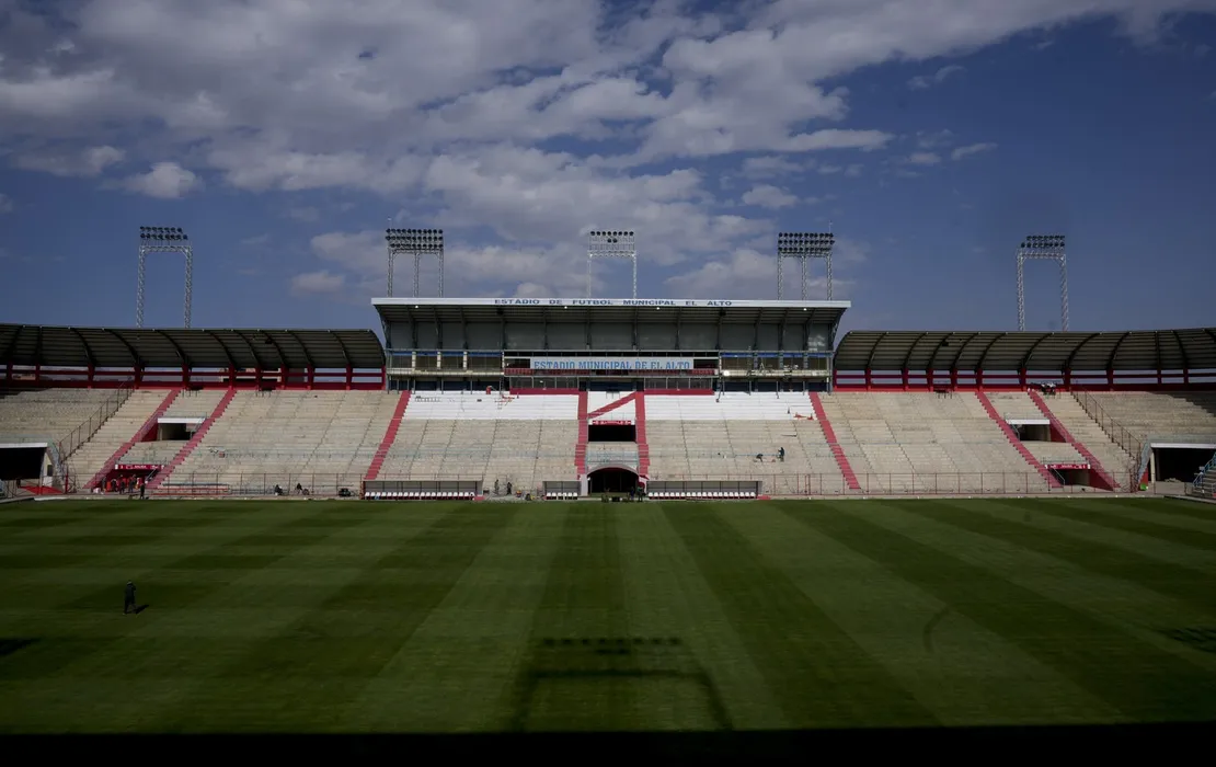 The Municipal Villa Ingenio stadium stands in El Alto, Bolivia, Thursday, Aug. 29, 2024.,Image: 904710243, License: Rights-managed, Restrictions: This content is intended for editorial use only. For other uses, additional clearances may be required., Model Release: no
