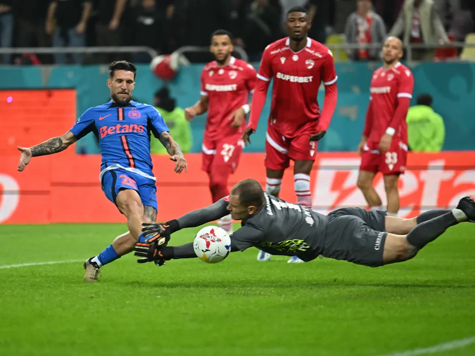 Alexandru Mihail Baluță marchează un gol în poarta lui Adnan Golubovic in meciul de fotbal dintre Dinamo Bucuresti si FCSB, contand pentru Cupa Romaniei, desfasurat pe Arena Nationala din Bucuresti, miercuri 30 octombrie 2024. © FOTO:Razvan Pasarica/SPORT PICTURES