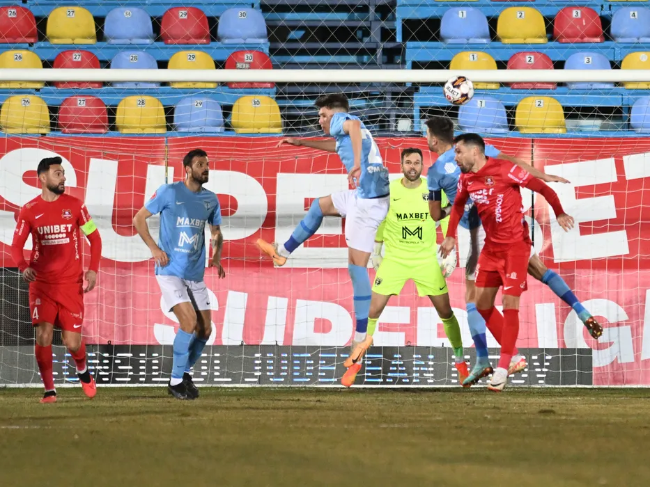 Ionut Stoica, Patricio Martin Matricardi, Collado Jesus Fernandez si Valerica Marius Gaman în meciul de fotbal dintre FC Voluntari si FC Hermannstadt, contând pentru Superliga Superbet, desfășurat pe Stadionul Anghel Iordanescu din Voluntari, luni 5 februarie 2024. © FOTO: Răzvan PĂSĂRICĂ/SPORT PICTURES