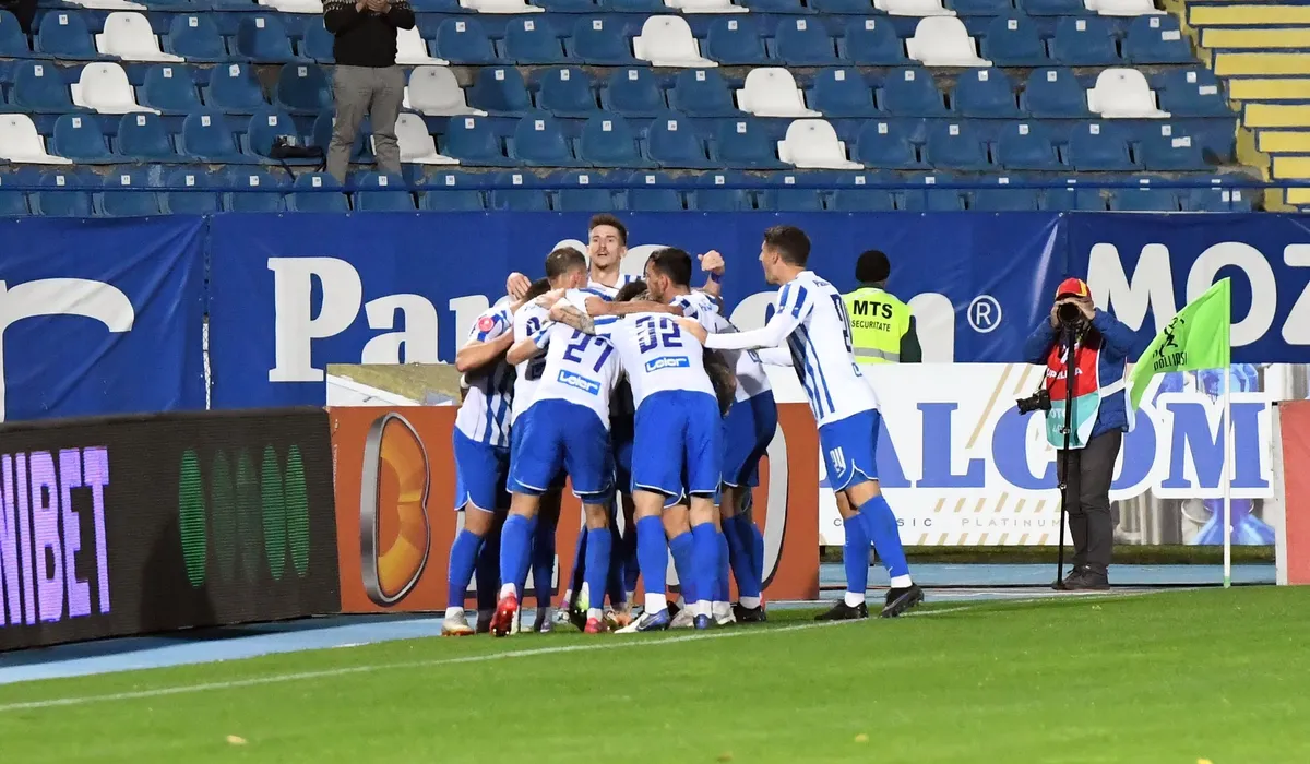 jucătorii ieșeni se bucură după înscrierea golului în meciul de fotbal dintre POLI IAȘI si SC OȚELUL GALAȚI contând pentru SuperLiga Superbet, desfașurat pe Stadionul Emil Alexandrescu din Iași, vineri 03 noiembrie 2023. © FOTO: Tudi/SPORT PICTURES