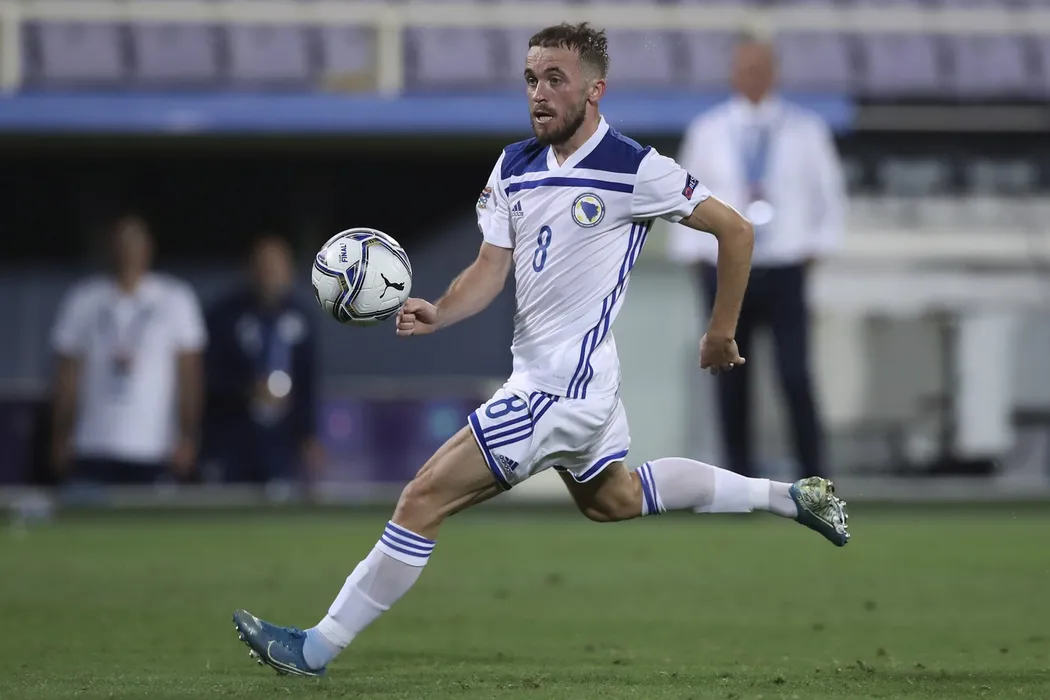September 4, 2020, Florence, United Kingdom: Edin Visca of Bosnia and Herzegovina during the UEFA Nations League match at Stadio Artemio Franchi, Florence. Picture date: 4th September 2020. Picture credit should read: Jonathan Moscrop/Sportimage,Image: 684770725, License: Rights-managed, Restrictions: This content is intended for editorial use only. For other uses, additional clearances may be required.