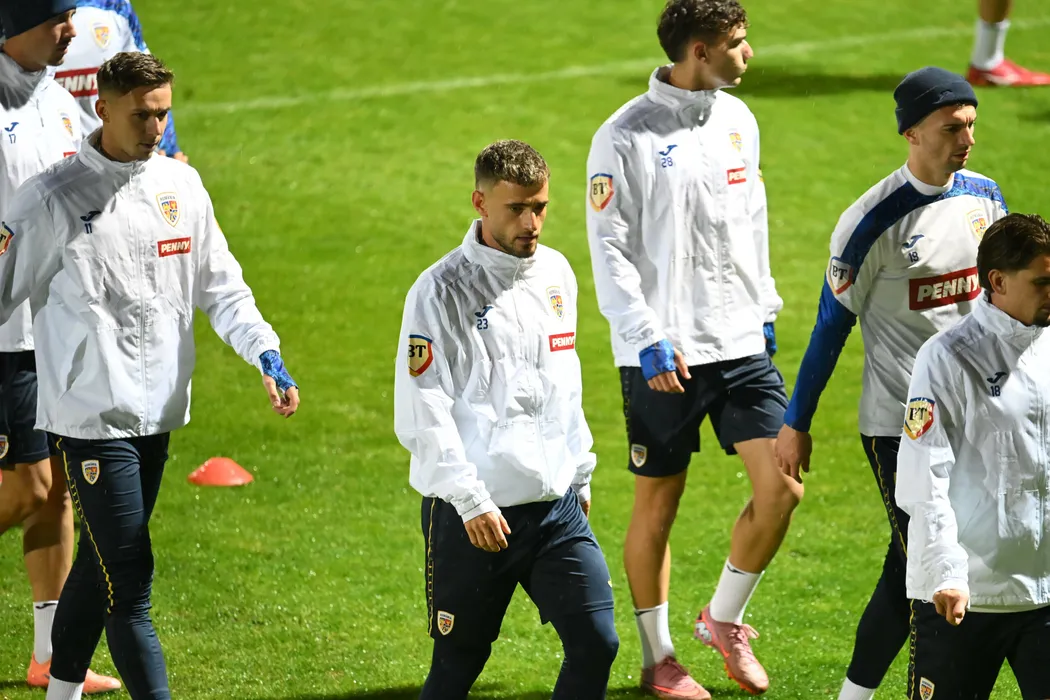 Fotbalistii romani Louis Munteanu, Vlad Dragomir si Florin Tanase la antrenamentul oficial de dinaintea meciului amical impotriva Moldovei, desfasurat la Centrul National de Fotbal de la Mogosoaia, miercuri 8 octombrie 2025. © FOTO:Razvan Pasarica/SPORT PICTURES