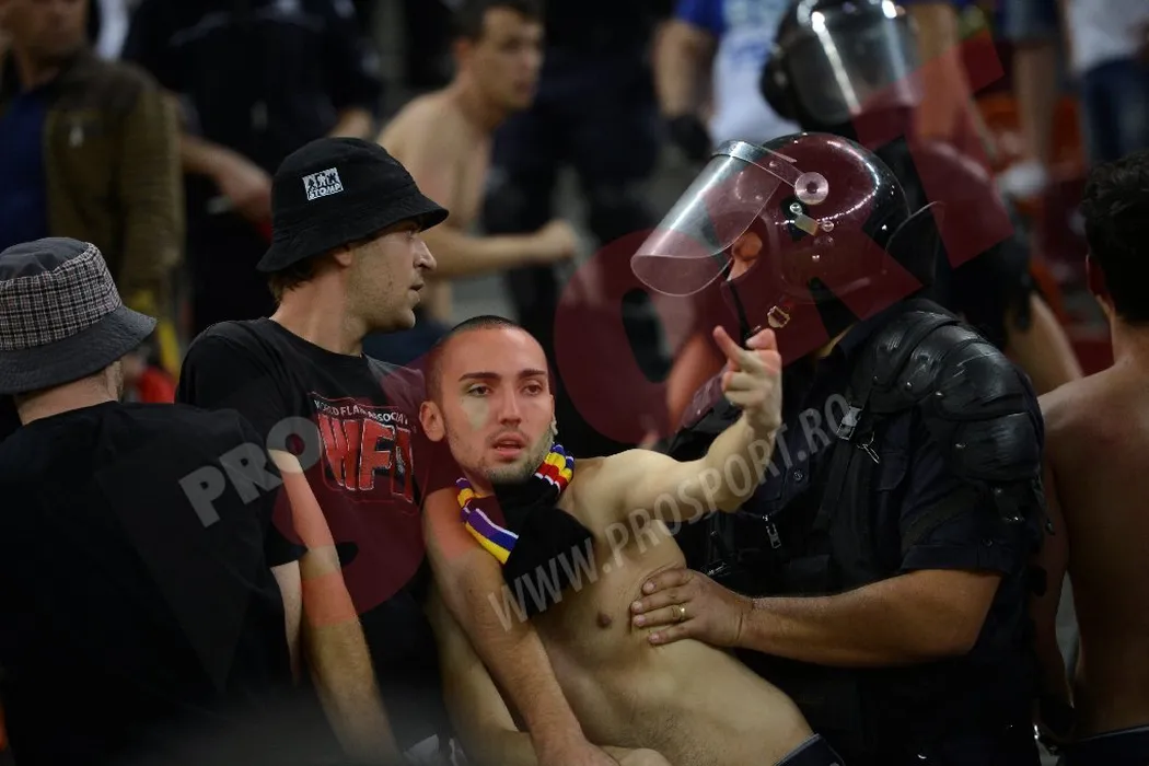 Au uitat de meci. Românii s-au bătut între ei în peluză. Un mesaj patriotic a generat conflictul între fanii rivalelor din Liga 1! Ce s-a întâmplat
