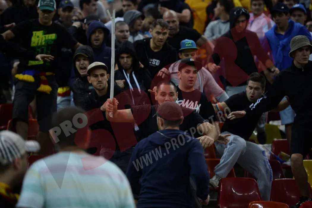 Au uitat de meci. Românii s-au bătut între ei în peluză. Un mesaj patriotic a generat conflictul între fanii rivalelor din Liga 1! Ce s-a întâmplat