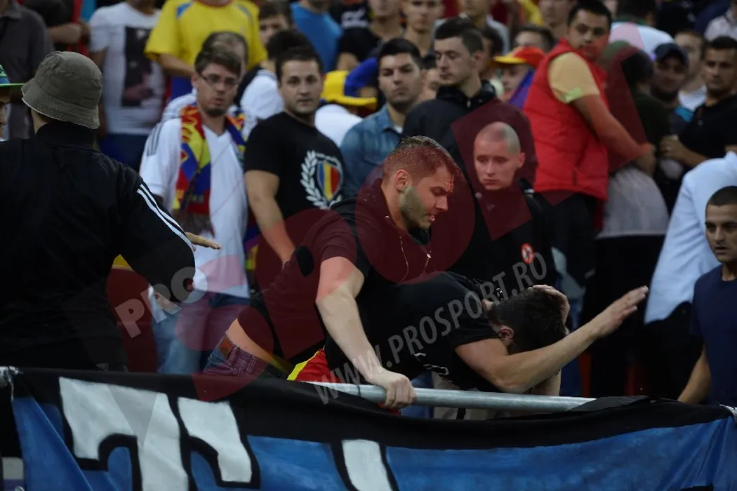 Au uitat de meci. Românii s-au bătut între ei în peluză. Un mesaj patriotic a generat conflictul între fanii rivalelor din Liga 1! Ce s-a întâmplat