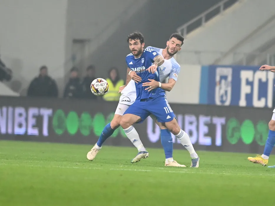 Aurelian Ionut Chitu si Mihai Popescu in meciul de fotbal dintre FC U Craiova si Farul Constanta, contand pentru Superliga Superbet, desfasurat pe Stadionul Ion Oblemenco din Craiova, vineri 28 octombrie 2022. © FOTO:Razvan Pasarica/SPORT PICTURES