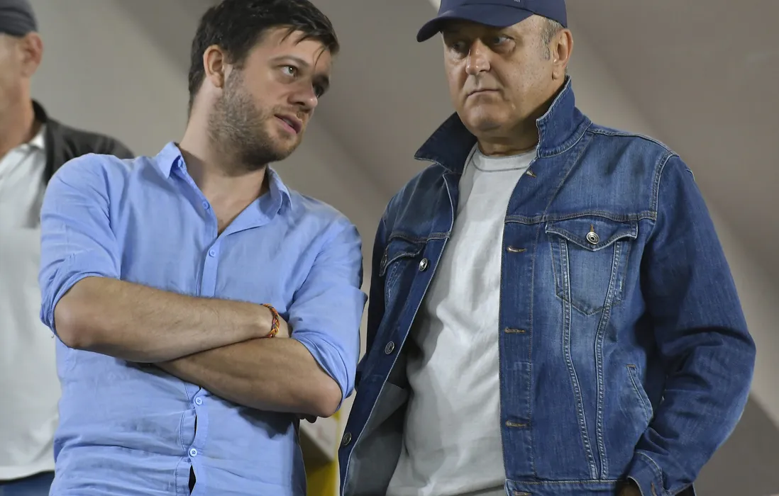 Victor Angelescu si Dan Sucu discuta in tribuna la meciul de fotbal dintre Romania si Muntenegru, contand pentru Liga Natiunilor, desfasurat pe Stadionul Rapid Giulesti din Bucuresti, marti 14 iunie 2022. © FOTO:Razvan Pasarica/SPORT PICTURES