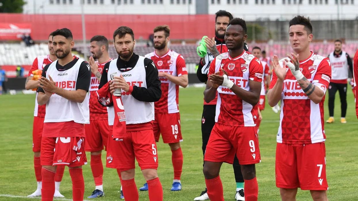 Fotbalistii dinamovisti Geani Mihai Cretu, Alexandru Ilie Rauta, Azankpo Desire Segbe si Steliano Filip saluta galeria dupa meciul de fotbal dintre Dinamo Bucuresti si Academica Clinceni, contand pentru Play-out-ul Ligii 1 Casa Pariurilor, desfasurat pe Stadionul Dinamo din Bucuresti, sambata 30 aprilie 2022. © FOTO:Razvan Pasarica/SPORT PICTURES