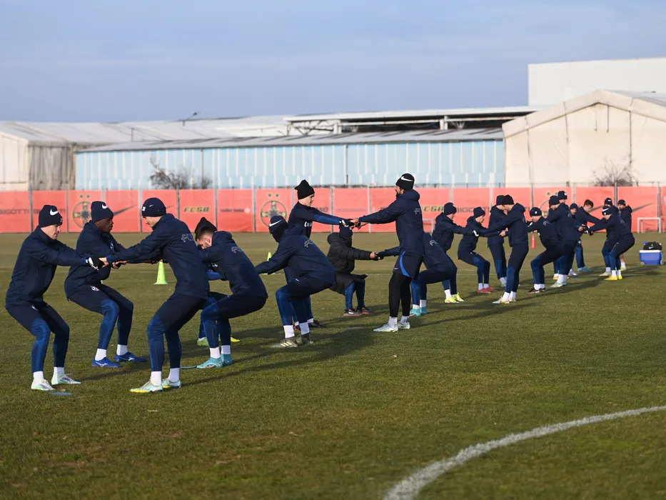 Primul antrenament din noul an al fotbalistilor de la FCSB printre care Darius Dumitru Olaru, Adrian Gheorghe Sut, Joyskim Aurelien Dawa Tchakonte si Ovidiu Marian Popescu, desfasurat la baza FCSB din Bucuresti, joi 5 ianuarie 2023. © FOTO:Razvan Pasarica/SPORT PICTURES