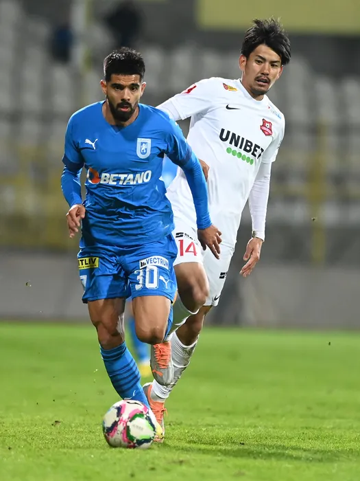 Ionut Daniel Vina si Mino Sota in meciul de fotbal dintre FC Hermannstadt si Universitatea Craiova, contand pentru Cupa Romaniei, desfasurat pe stadionul Municipal din Medias, miercuri 19 octombrie 2022. © FOTO:Razvan Pasarica/SPORT PICTURES