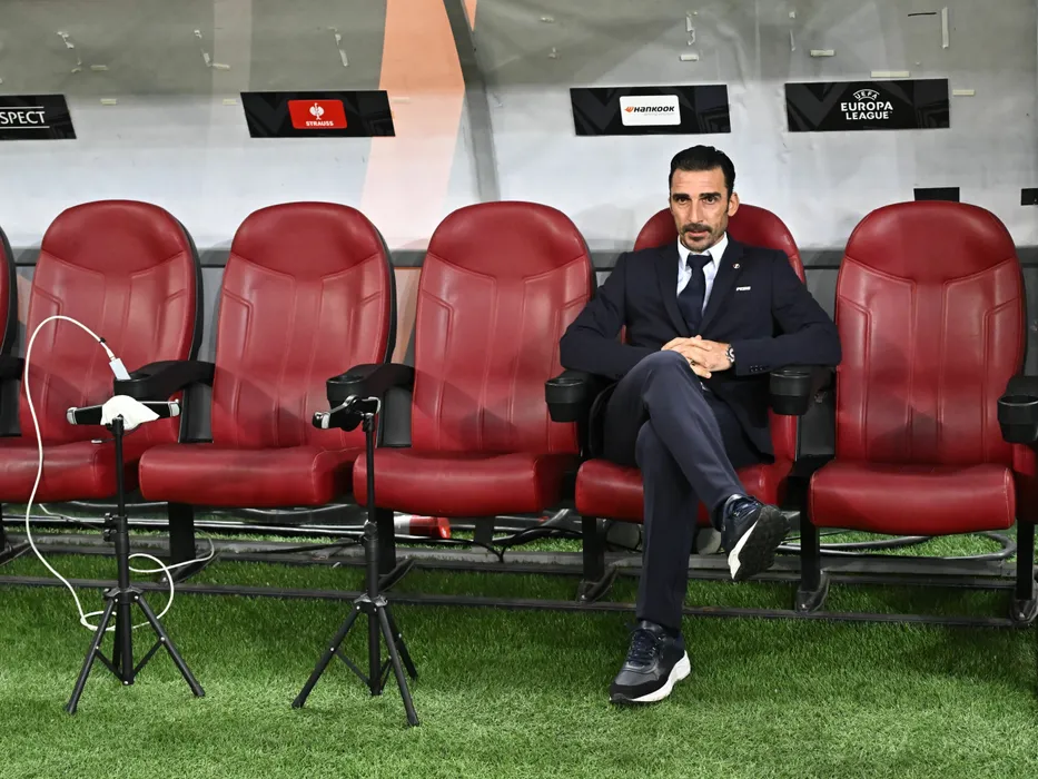 Elias Charalambous reacționează la meciul de fotbal dintre FCSB si FC Olympiacos Pireu, contand pentru UEFA Europa League, desfasurat pe Arena Nationala din Bucuresti, joi 28 noiembrie 2024. © FOTO:Razvan Pasarica/SPORT PICTURES