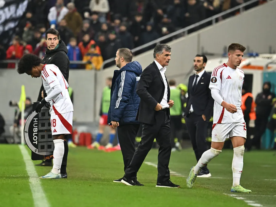 José Luis Mendilibar alături de arbitrul de rezerva Jakob Semler, Willian si Costinha la schimbare in meciul de fotbal dintre FCSB si FC Olympiacos Pireu, contand pentru UEFA Europa League, desfasurat pe Arena Nationala din Bucuresti, joi 28 noiembrie 2024. © FOTO:Razvan Pasarica/SPORT PICTURES