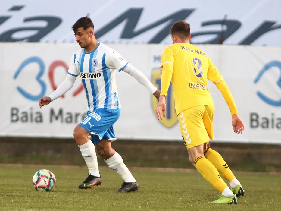 Jovan Markovic in timpul meciului de fotbal dintre CS Minaur Baia Mare si Universitatea Craiova din cadrul optimilor de finala ale Cupei Romaniei, disputat pe Stadionul Viorel Mateianu din Baia Mare, miercuri 27 octombrie 2021. FOTO: Paul Ursachi / Sportpictures
