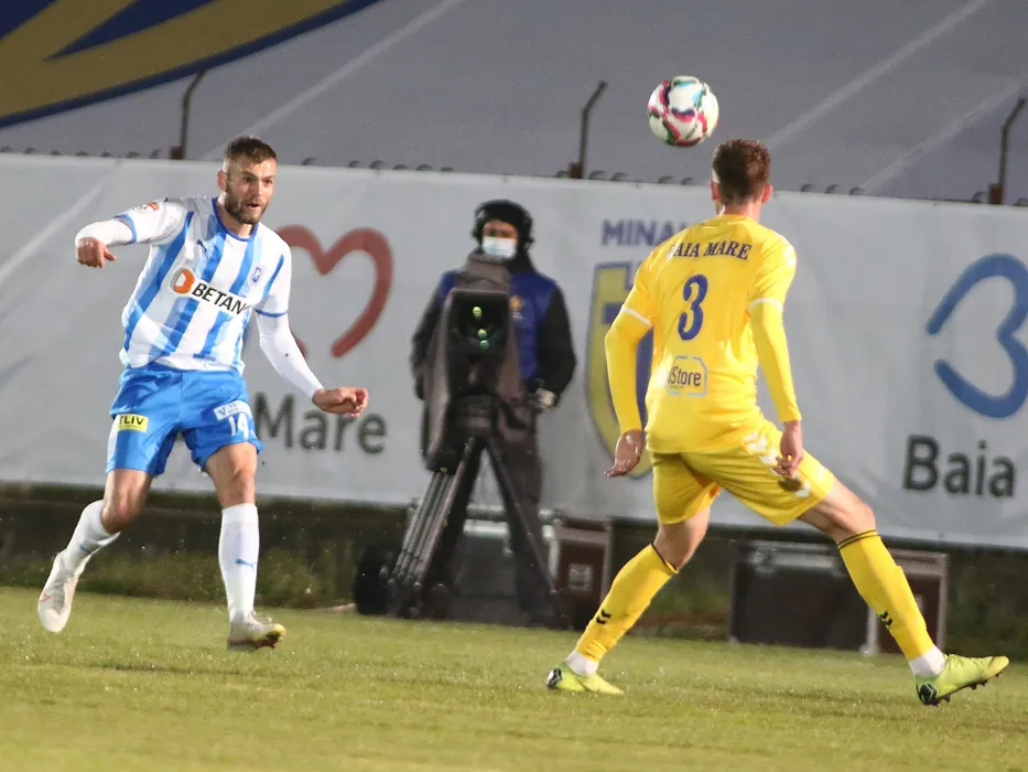 Alexandru Cretu in timpul meciului de fotbal dintre CS Minaur Baia Mare si Universitatea Craiova din cadrul optimilor de finala ale Cupei Romaniei, disputat pe Stadionul Viorel Mateianu din Baia Mare, miercuri 27 octombrie 2021. FOTO: Paul Ursachi / Sportpictures