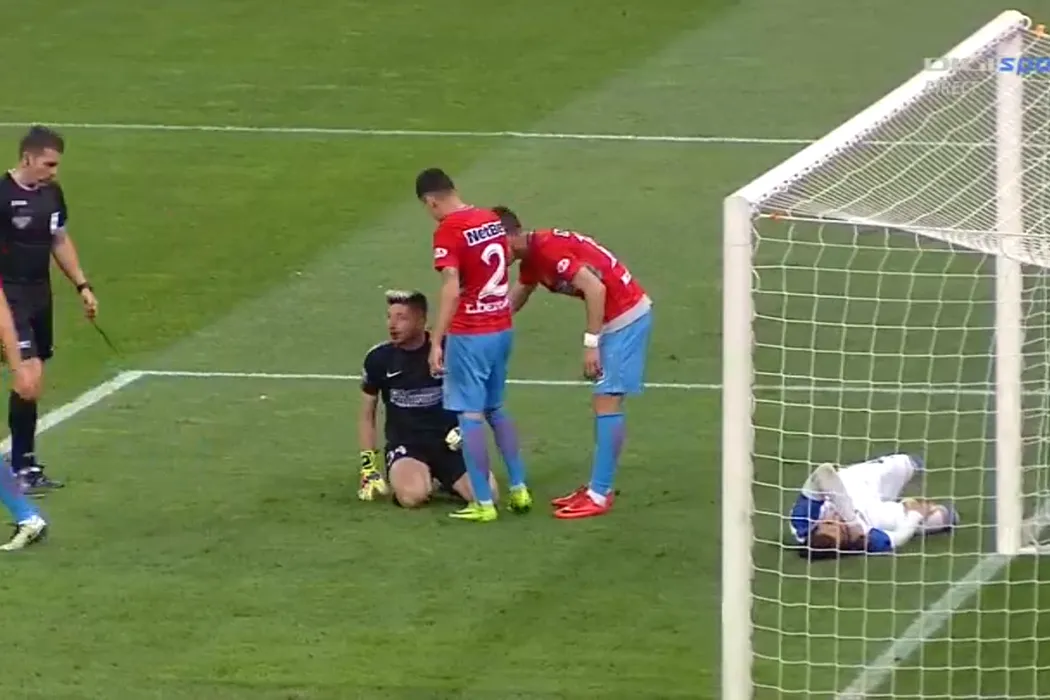Bălgrădean, făcut KO de un adversar! Portarul a fost umplut de sânge și a avut nevoie de intervenția ambulanței | GALERIE FOTO