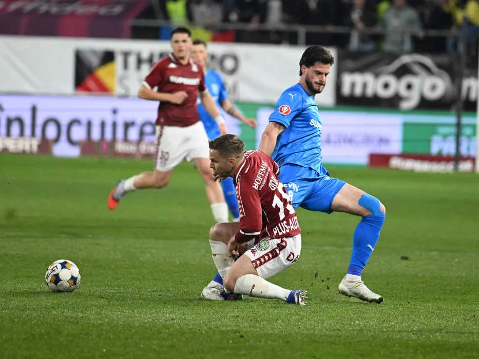 Phillipe Razvan Onea si Tudor Cristian Baluta in meciul de fotbal dintre Rapid Bucuresti si Universitatea Craiova, din cadrul Superligii Superbet, desfasurat pe Superbet Arena-Giulesti din Bucuresti, duminica 8 martie 2026. © FOTO:Razvan Pasarica/SPORT PICTURES