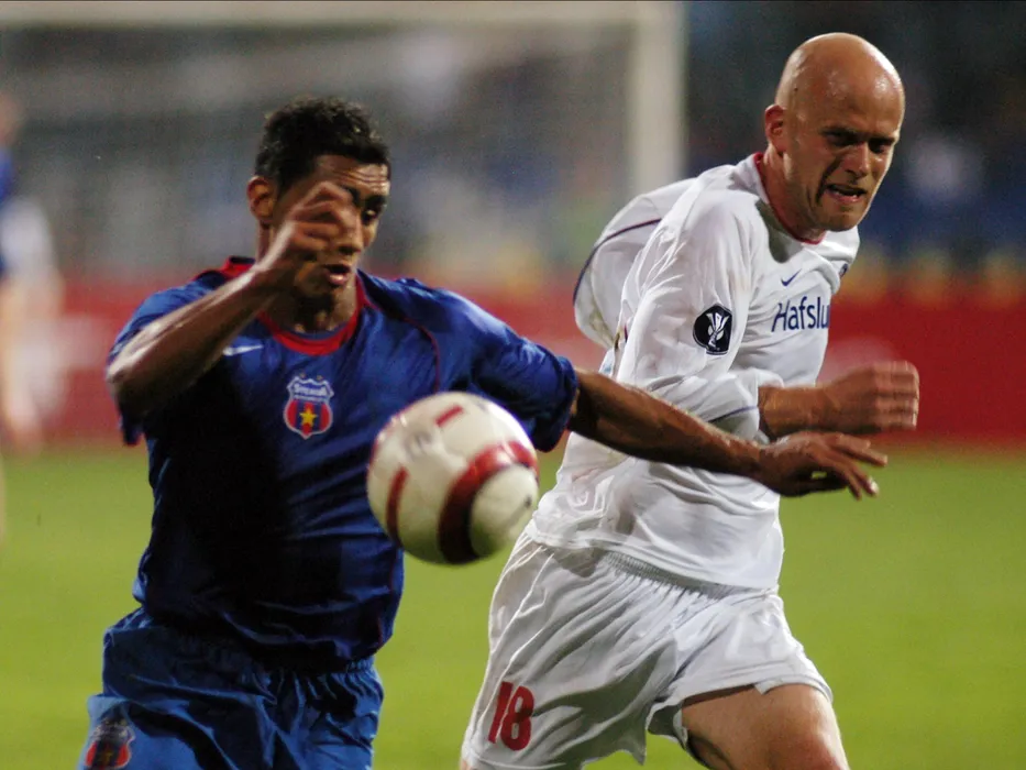 Banel Nicolita si Tommy Stenersen in meciul de fotbal dintre Steaua Bănel Nicoliță și Tommy Stenersen în meciul FCSB - Valerenga
