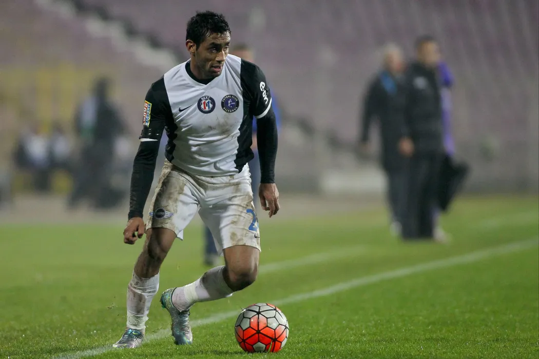 Banel Nicolita, de la Viitorul Constanta, suteaza in timpul meciului de fotbal contra echipei ACS Poli Timisoara din etapa a XXI-a a Ligii I, disputat pe stadionul Dan Paltinisanu din Timisoara, sambata, 5 decembrie 2015. SEBASTIAN TATARU / MEDIAFAX FOTO