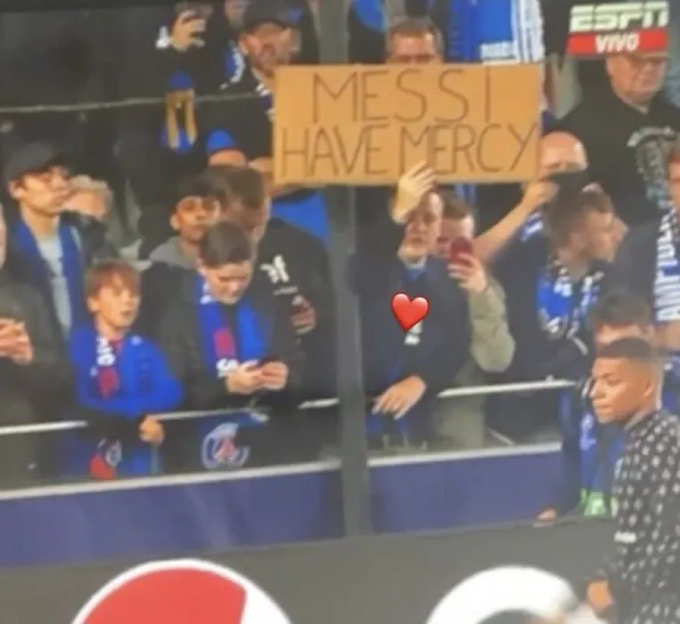 Banner genial afișat de un puști belgian la meciul Club Brugge – PSG! Ce i-a cerut lui Lionel Messi | FOTO