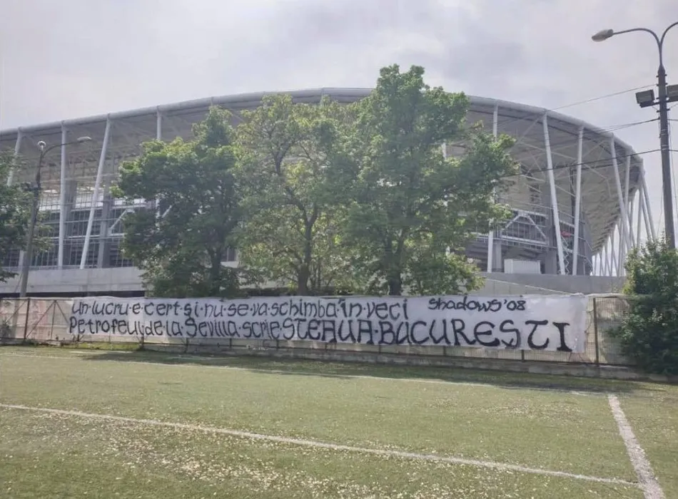 Banner uriaș afișat la noul stadion din Ghencea! Mesajul ultrașilor steliști, la 34 de ani de la câștigarea Cupei Campionilor Europeni | FOTO