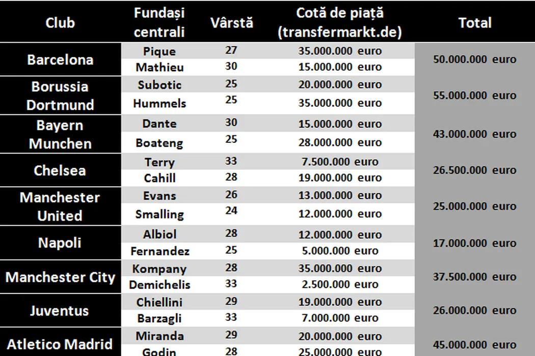 Barcelona ajunge în top după transferul lui Mathieu. Cele mai înalte, dar și cele mai scumpe cupluri de fundași centrali din Europa