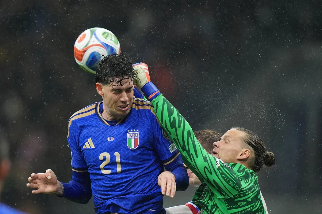 16 November 2025, Italy, Milan: Italy's Alessandro Bastoni battles for the ball with Norway's Orjian Nyland during the FIFA World Cup European Qualifying soccer match between Italy and Norway at San Siro Stadium. Photo: Spada/LaPresse via ZUMA Press/dpa