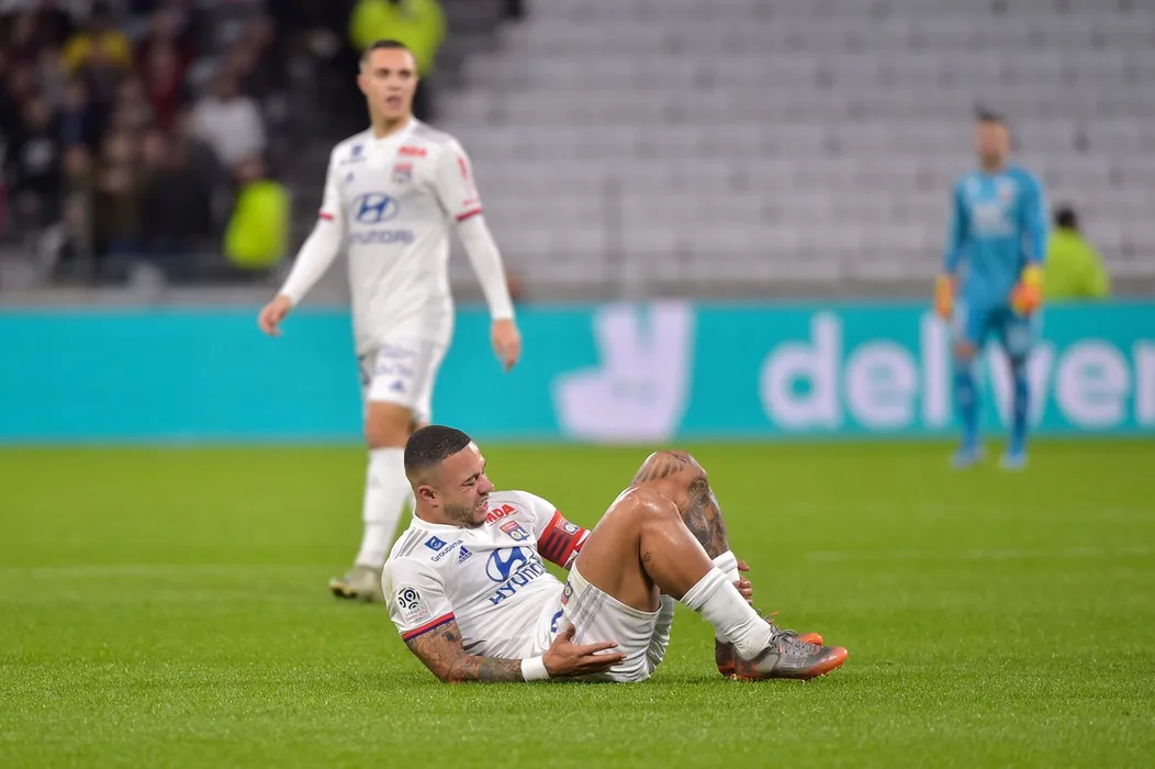 Lyon's Dutch forward Memphis Depay reacts in pain during the French L1 football match between Lyon (OL) and Rennes (SR) on December 15, 2019, at the Groupama Stadium in Decines-Charpieu, near Lyon., Image: 488299104, License: Rights-managed, Restrictions: , Model Release: no, Credit line: ROMAIN LAFABREGUE / AFP / Profimedia