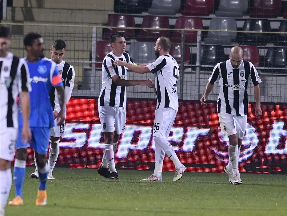 Risto Radunovic se bucura dupa un gol marcat alaturi de Silviu Nicolae Balaure si Dario Canadija in meciul de fotbal dintre Astra Giurgiu si CSM Politehnica Iasi, contand pentru Liga 1 Casa Pariurilor, desfasurat fara spectatori pe Stadionul Marin Anastasovici din Giurgiu, sambata 24 octombrie 2020. © FOTO:Razvan Pasarica/SPORT PICTURES