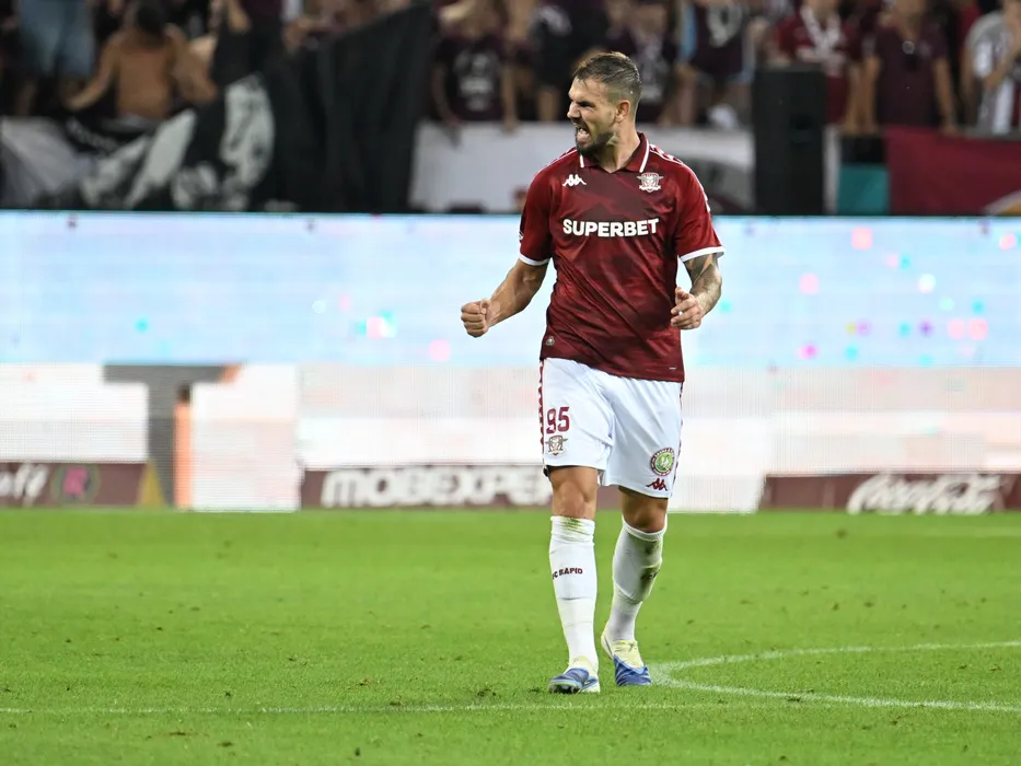 Elvir Koljic se bucură dupa un nou gol marcat in meciul de fotbal dintre Rapid Bucuresti si FCSB, din cadrul Superligii Superbet, desfasurat pe Arena Nationala din Bucuresti, duminica 17 august 2025. © FOTO:Razvan Pasarica/SPORT PICTURES