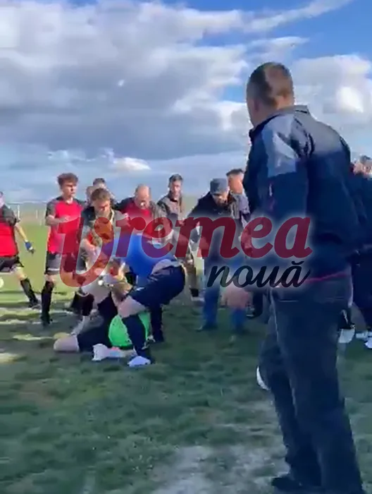 Bătaie ca în filme la un meci din Liga 5! S-a lăsat cu geamuri sparte și intervenția ambulanței. VIDEO