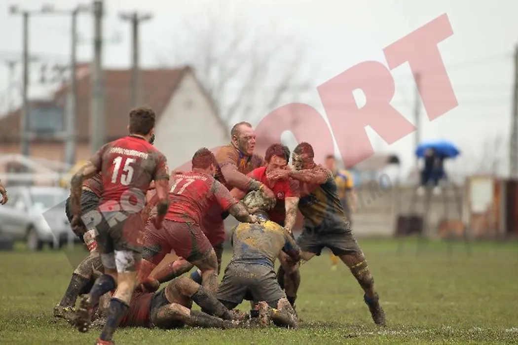 „Bătaie” cu nămol!** Derby-ul Superligii de rugby s-a jucat într-o „mlaștină”