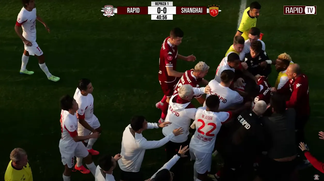 Bătaie generală în meciul Rapidului cu Shanghai Port! Fotbalistul lui Şumudică a fost eliminat