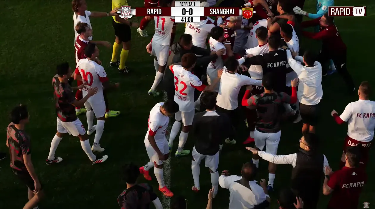 Bătaie generală în meciul Rapidului cu Shanghai Port! Fotbalistul lui Şumudică a fost eliminat
