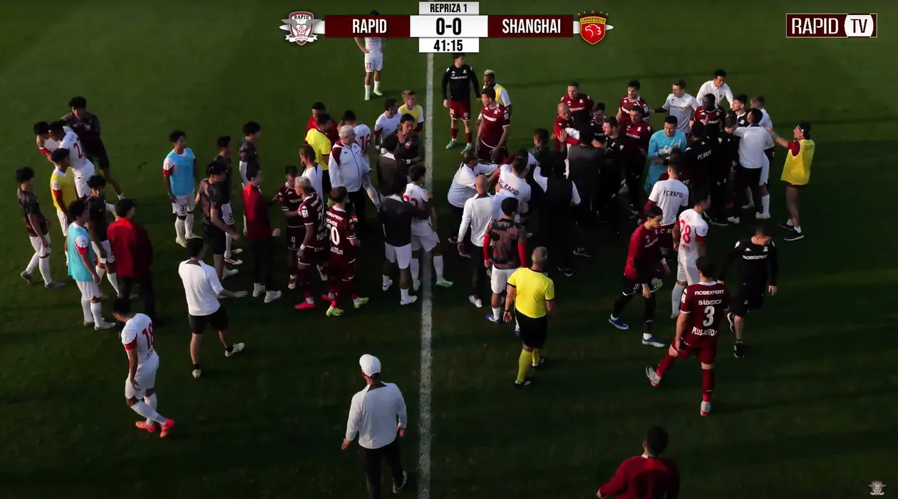 Bătaie generală în meciul Rapidului cu Shanghai Port! Fotbalistul lui Şumudică a fost eliminat